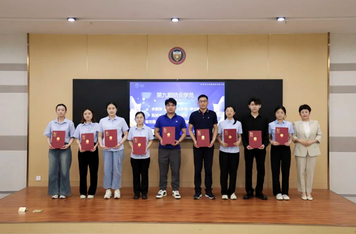 集團總裁助理、人力資源部總監(jiān)尹麗莉為學員頒發(fā)第九期學員結(jié)業(yè)證書。