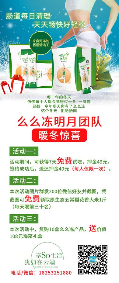 活動(dòng)三 本次活動(dòng)中,復(fù)購(gòu)10盒么么凍產(chǎn)品,送價(jià)值108元海藻年貨禮盒。