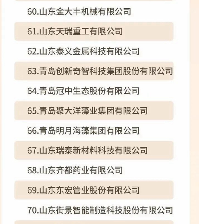 明月海藻集團榮獲山東民營企業行業領軍10強、創新100強