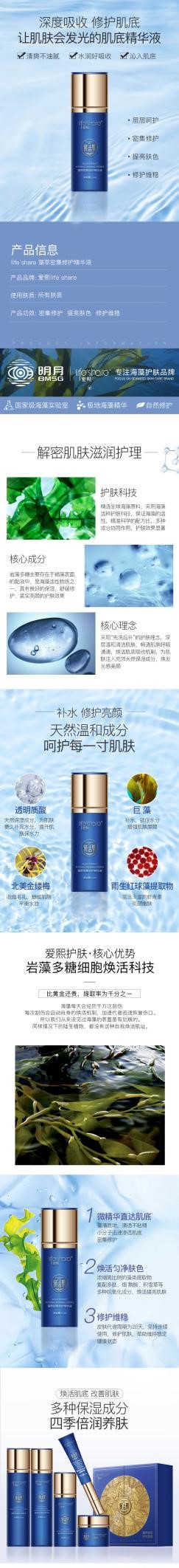 產(chǎn)品介紹:突破海藻活粹源護(hù)膚科技,專利性濃縮深海珍藻精華,匯聚天然水潤護(hù)膚精華,形成天然肌膚強韌屏障,補水鎖水,刺激膠原重塑,煥活肌膚強大美力。