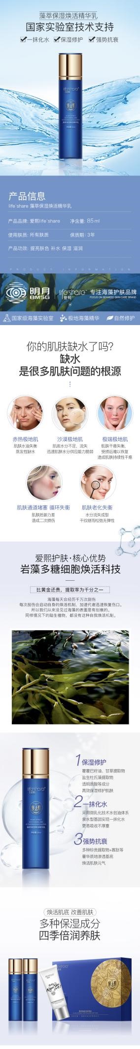 產(chǎn)品介紹:蘊(yùn)含褐藻、巨藻等多種海藻精粹,補(bǔ)水保濕,水潤(rùn)舒適,復(fù)配寡肽,銀耳提取物,促進(jìn)吸收,緩解肌膚干燥粗糙、干紋等問(wèn)題,喚醒肌膚嫩滑水光肌。